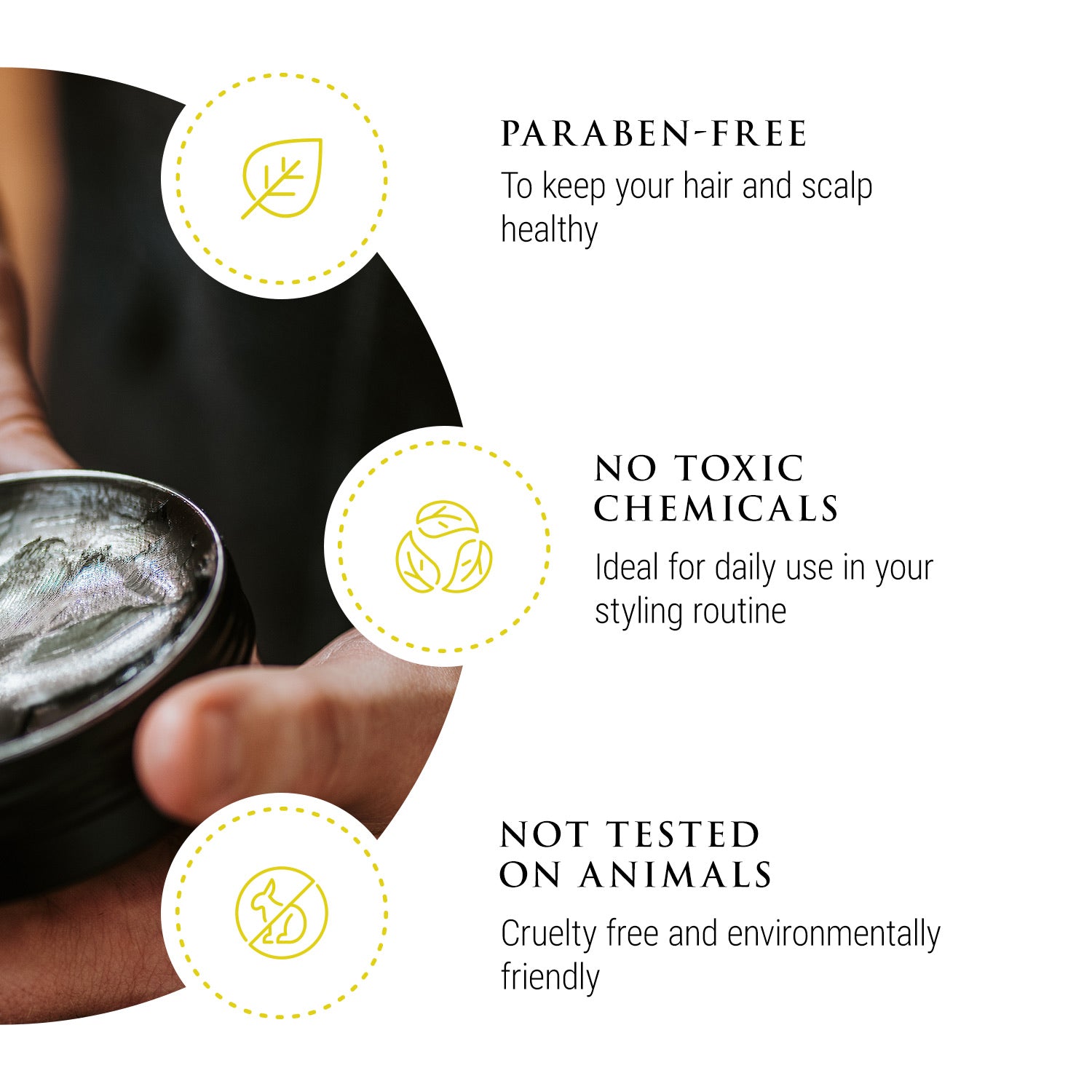 Our Gold Standard Pomade is formulated with the finest ingredients to provide a strong hold that lasts all day. It is perfect for men who want to achieve a sleek, polished look without sacrificing the health of their hair. Our pomade is made to nourish and protect your hair while providing a firm hold.